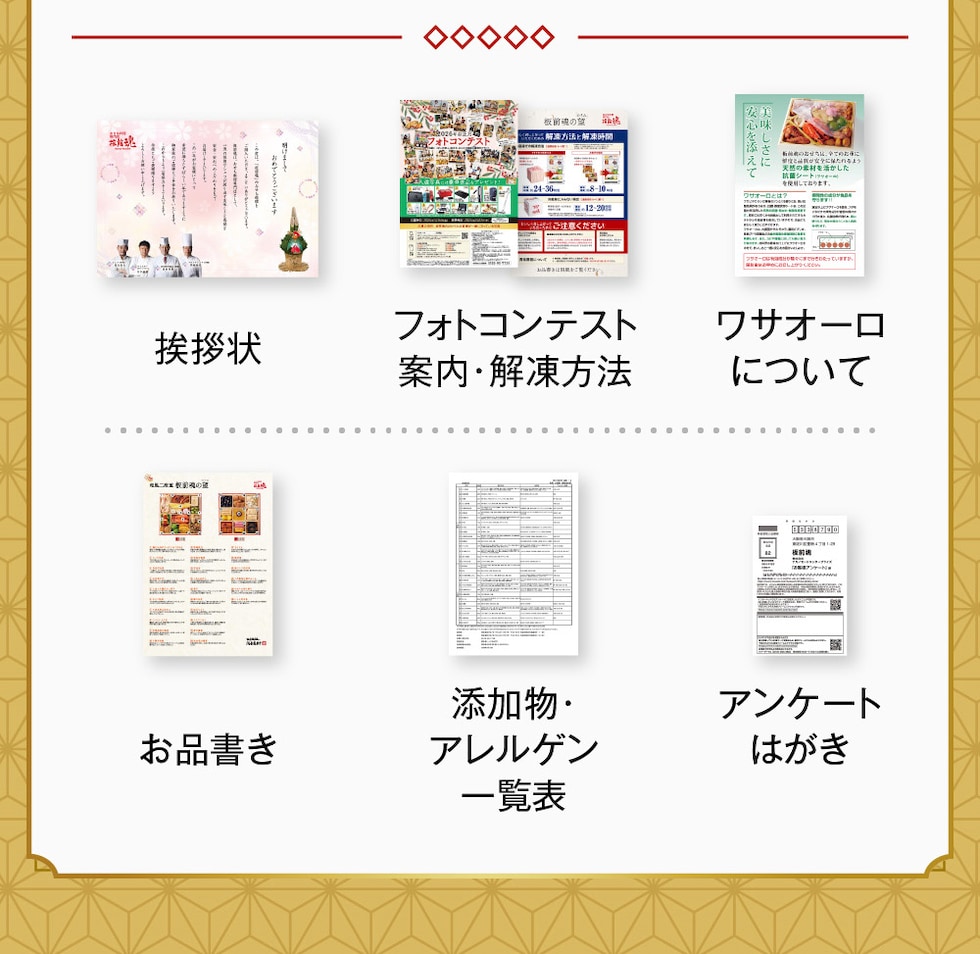 (お品書き、添加物・アレルゲン一覧表、解凍方法付き)