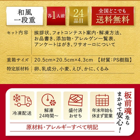 おせち 2026 予約 お節 料理「板前魂の煌 2個セット」和風 一段重 24品目 各1人前×2個 御節 送料無料 和風 2025 おせち料理