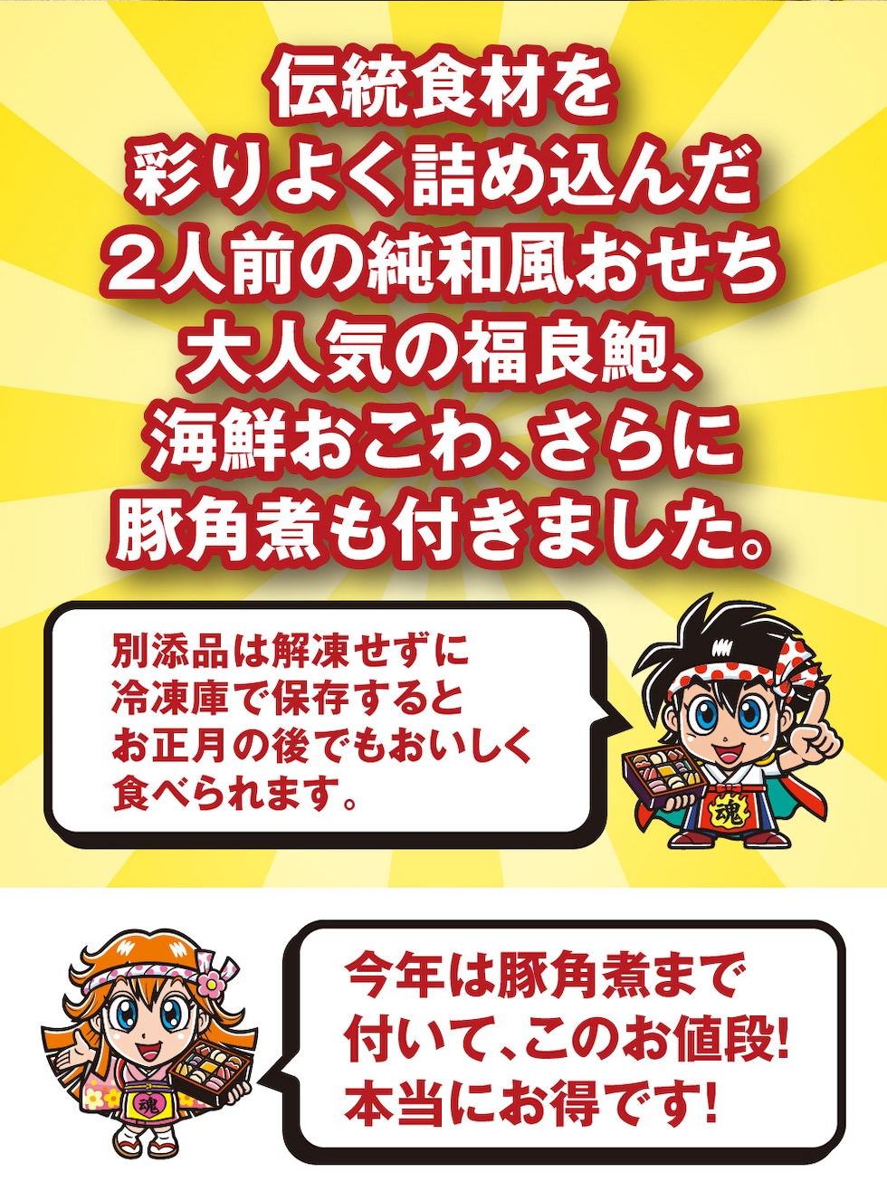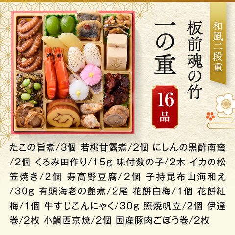 おせち 2026 予約 お節 料理「板前魂の竹」鮑 豚角煮 海鮮おこわ 付き 和風 二段重 31品目 2人前 御節 送料無料 2025 おせち料理