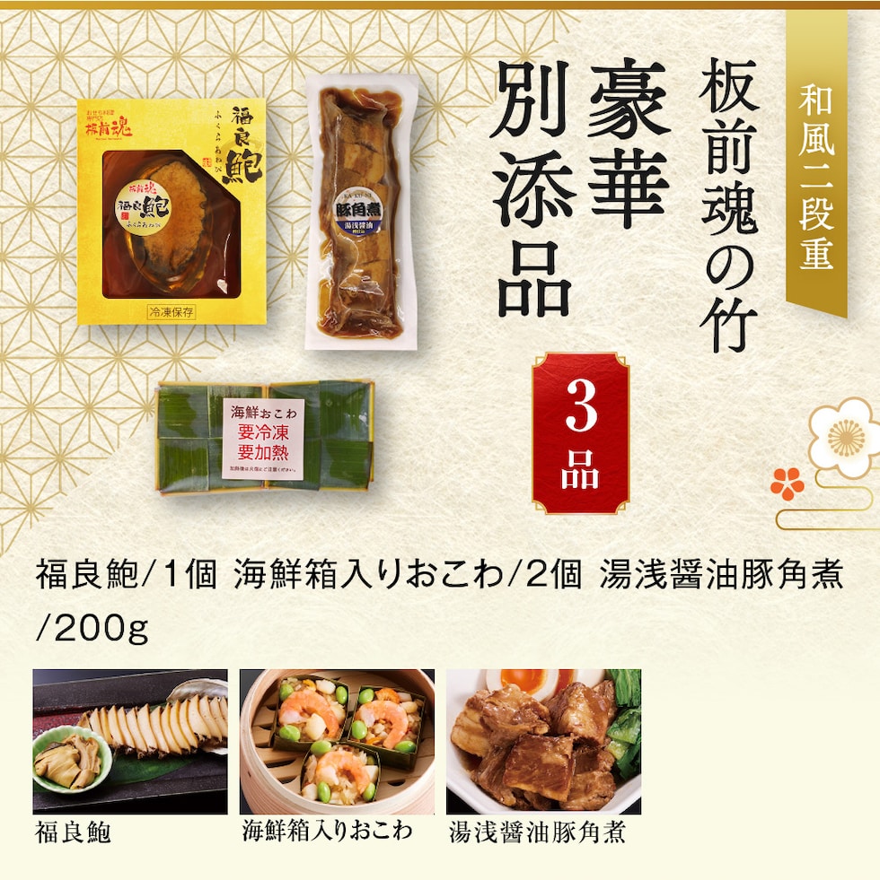 【別添品】福良鮑/海鮮箱入りおこわ/湯浅醤油豚角煮