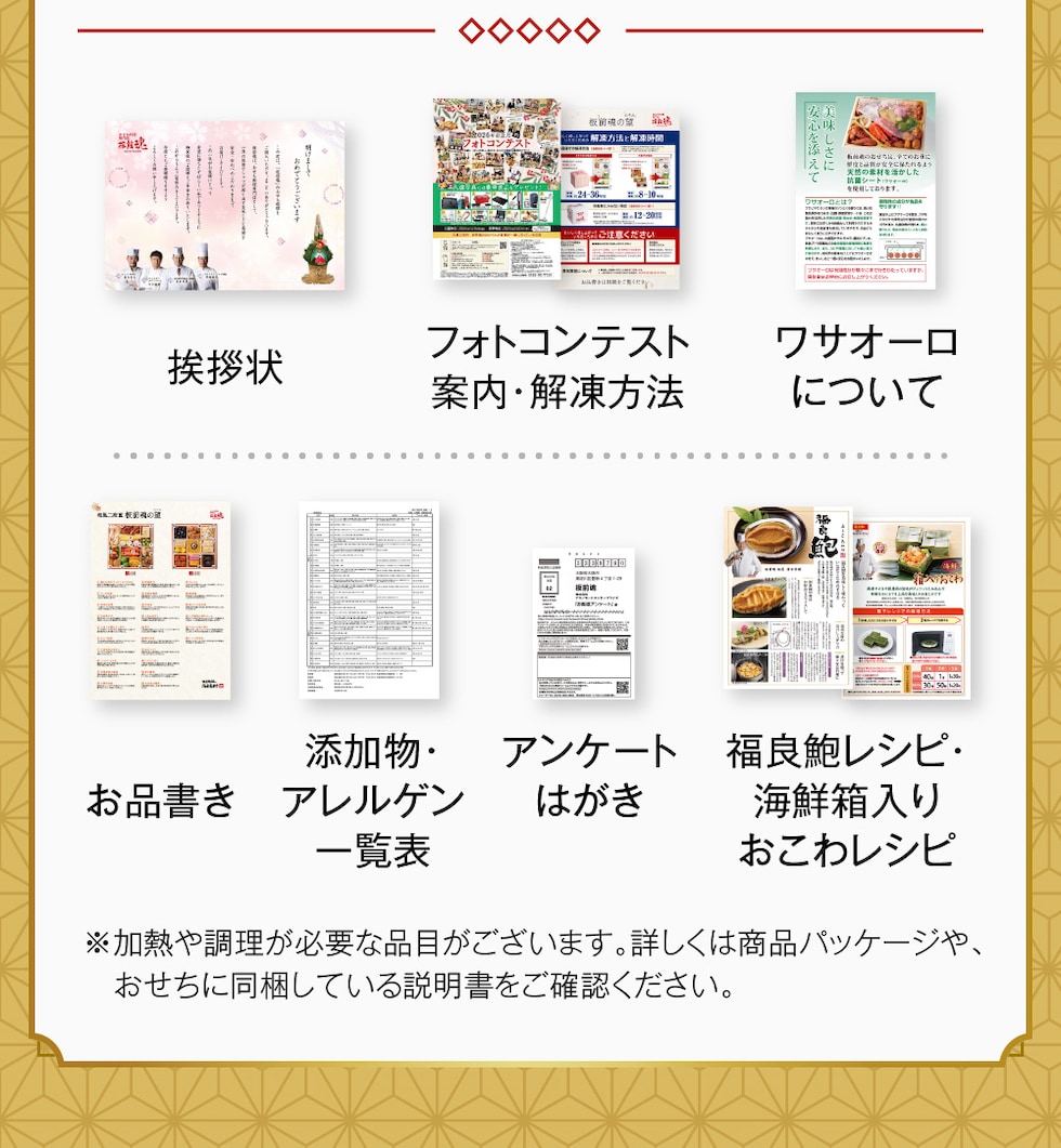 (お品書き、添加物・アレルゲン一覧表、解凍方法付き)