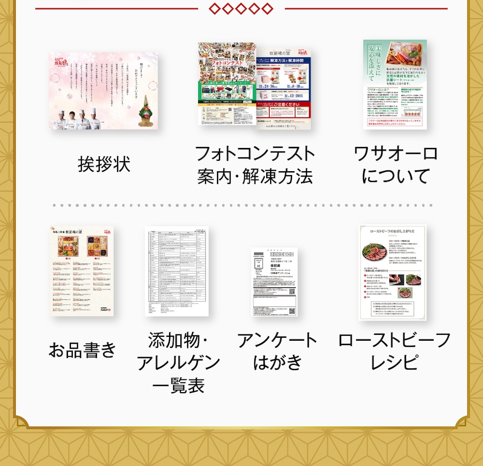 (お品書き、添加物・アレルゲン一覧表、解凍方法付き)