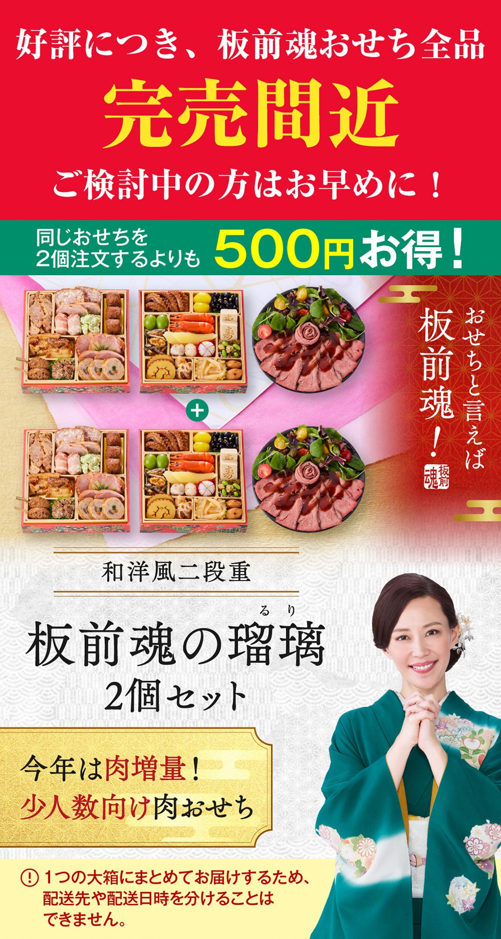 和洋風 二段重 おせち 板前魂の瑠璃 2個セット