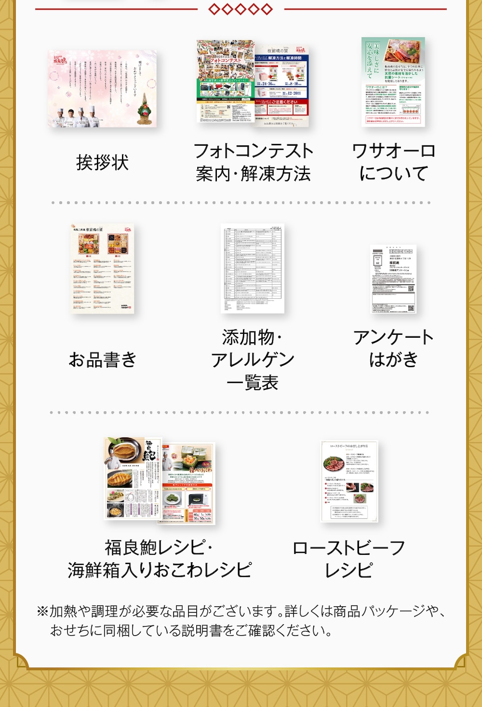 (お品書き、添加物・アレルゲン一覧表、解凍方法付き)
