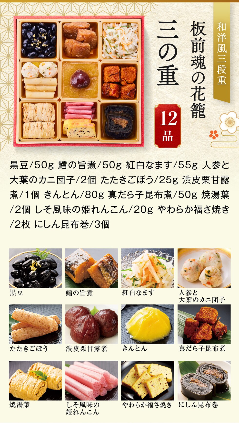 おせち 2026 予約 お節 料理「板前魂の花籠」和洋風 三段重 36品目 3人前 御節 送料無料 和風 洋風 2025 おせち料理