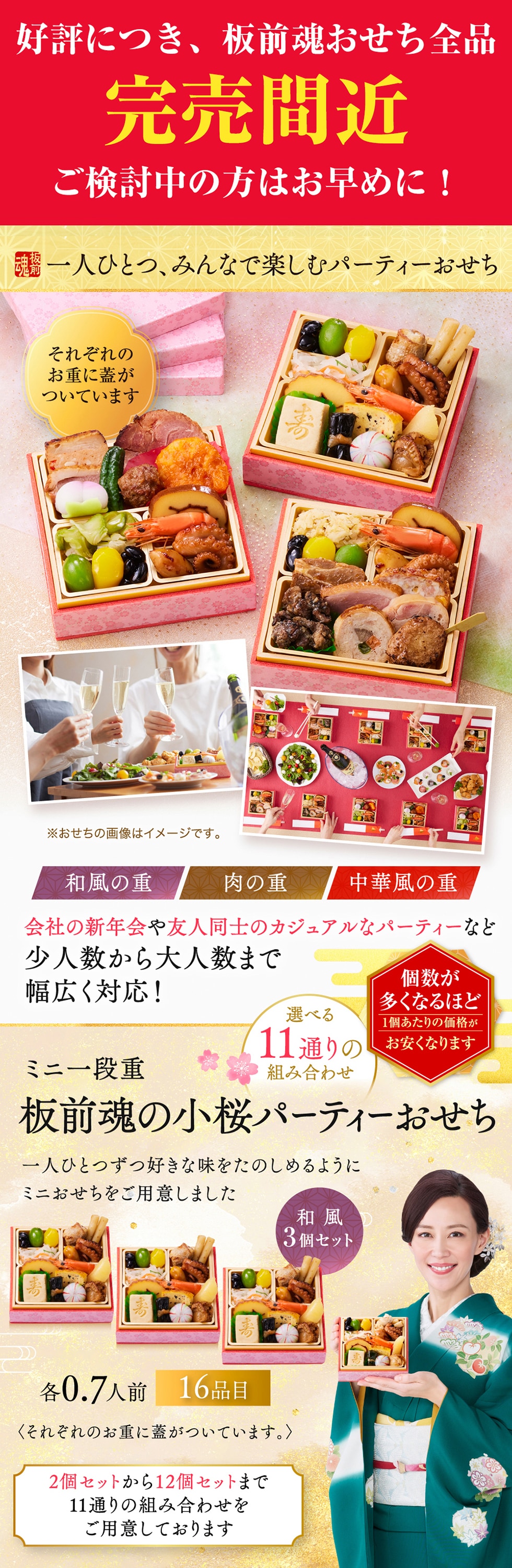 和風 ミニ一段重 おせち 板前魂の小桜パーティーおせち 3個セット(和:3個)