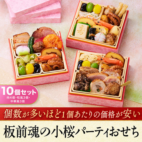 ミニ一段重 おせち 板前魂の小桜パーティーおせち 10個セット(肉:4個、和:3個、中華:3個)