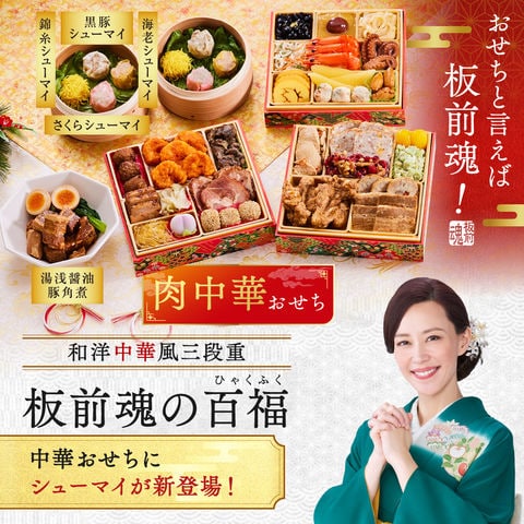 おせち 2026 予約 お節 料理「板前魂の百福」中華風おせち 豚角煮 焼売 付き 和洋中 三段重 33品目 3人前 御節 送料無料 和風 洋風 中華 肉中華 2025 おせち料理