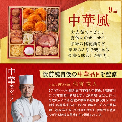 おせち 2026 予約 お節 料理「板前魂の万里」中華風おせち 鮑 豚角煮 焼売 餃子 たこちまき 付き 和洋中 三段重 37品目 3人前 御節 送料無料 和風 洋風 中華 肉中華 2025 おせち料理
