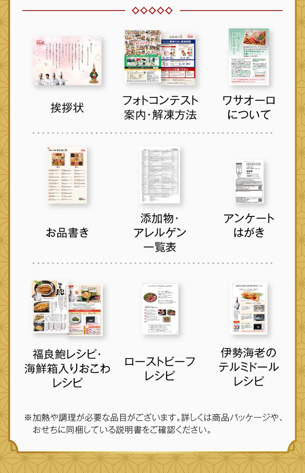 (お品書き、添加物・アレルゲン一覧表、解凍方法付き)