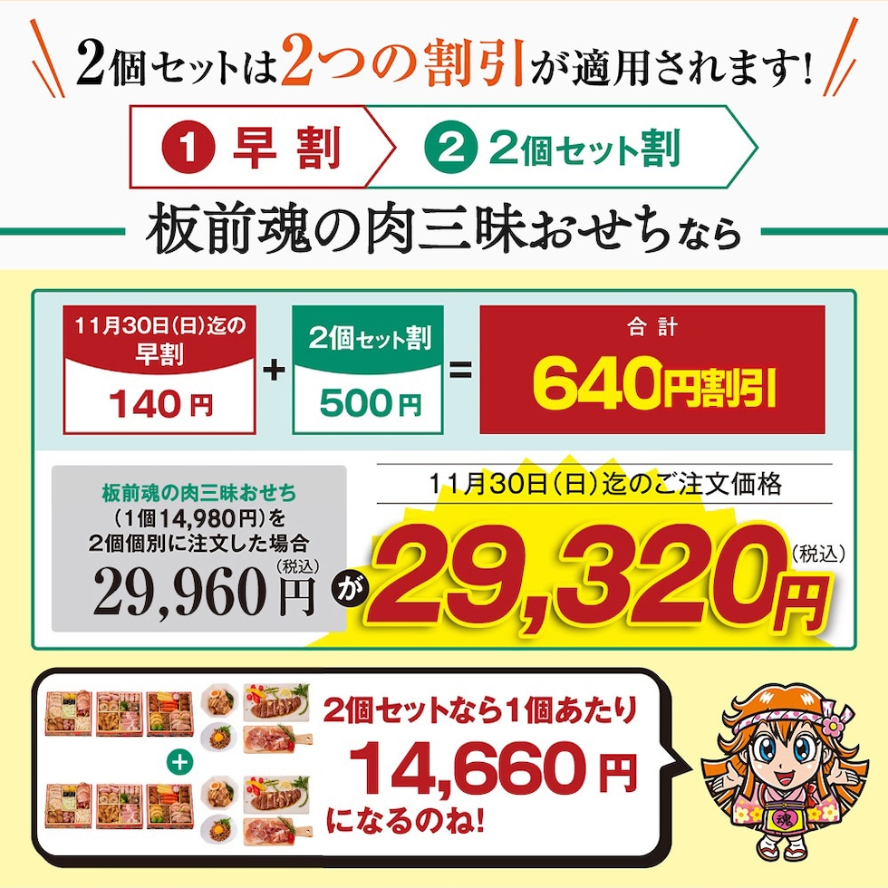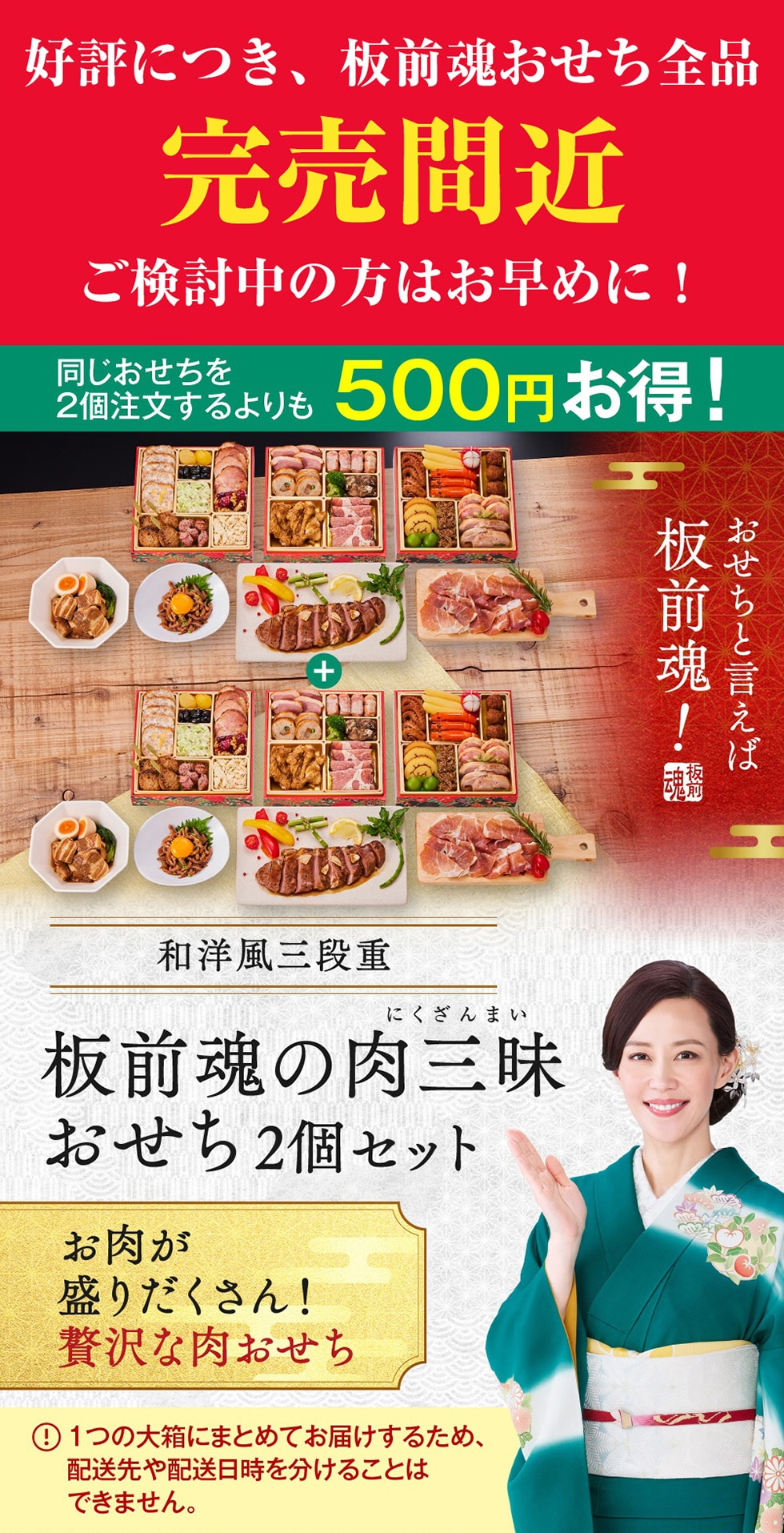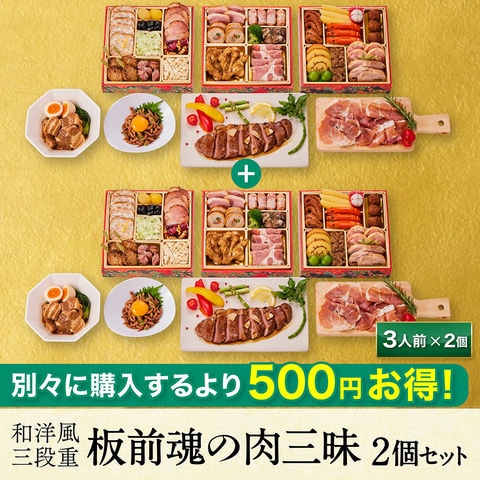 和洋風 三段重 おせち 板前魂の肉三昧おせち 2個セット