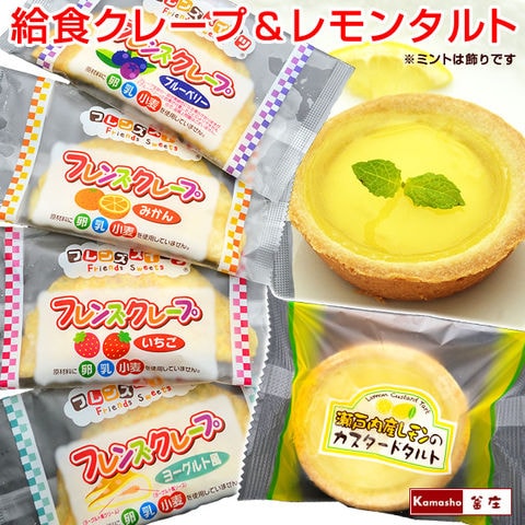 | 学校給食デザートの定番である給食フレンズクレープと瀬戸内産レモンのカスタードタルトをお取り寄せ♪