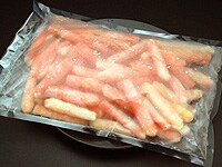 | 袋に入れていただき(直接水に触れないように)、10分-30分程度、小分けして流水解凍して下さい。(季節・水温・水量により異なります。) 多少芯が残ってる半解凍状態がベストです。完全に解凍すると、カニ自体の旨みも流れ出てしまうため、必ず半解凍で調理してください。なお、解凍後は重量は目減りいたします。 |