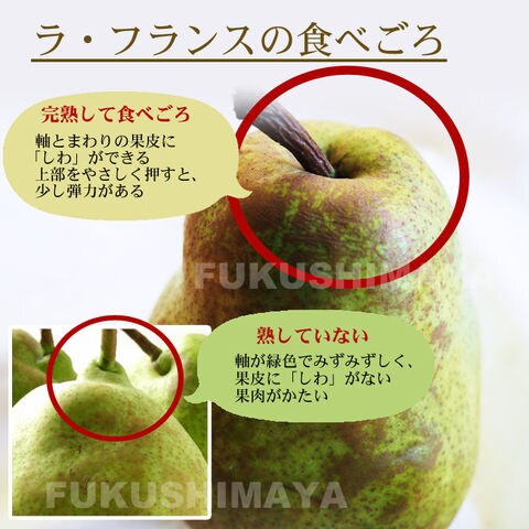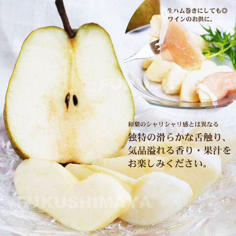 ・果実が固いときに召し上がると、甘みが薄く洋梨独特のとろける舌触りが感じられないので、食べ方にはご注意下さい。
