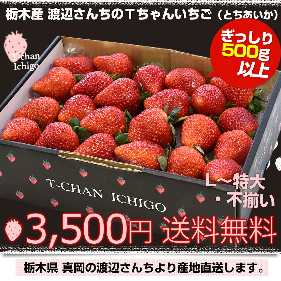 栃木県より産地直送 渡辺さんちのTちゃんいちご(とちあいか) 500g以上 (Lから特大:不揃い) 苺 いちご イチゴ ストロベリー 送料無料 クール便発送
