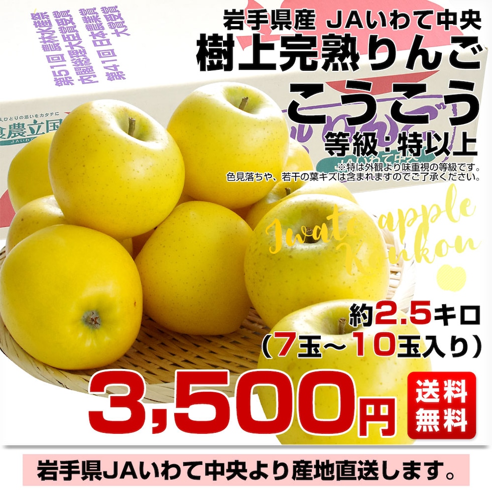 岩手県から産地直送 JAいわて中央 樹上完熟りんご「こうこう」等級:特以上 約2.5キロ(7玉から10玉)送料無料 りんご 林檎 リンゴ