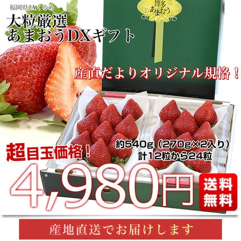 福岡県より産地直送 JAくるめ あまおう DX 約540g(270g×2入り)計12粒から24粒 送料無料 苺 いちご イチゴ from九州