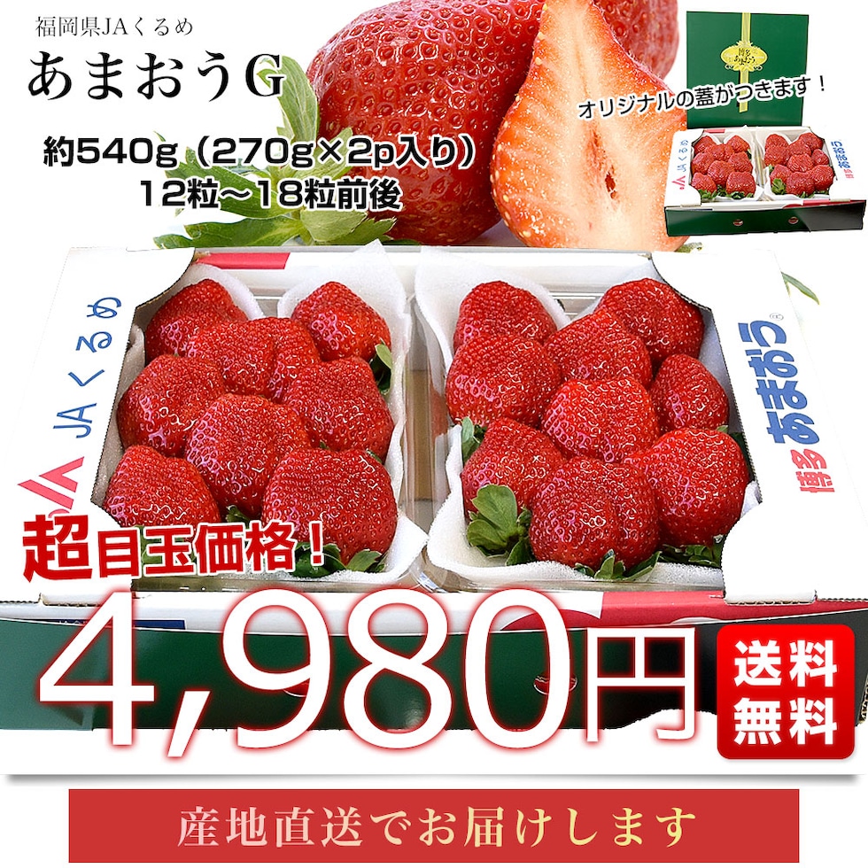 福岡県より産地直送 JAくるめ あまおうG 約540g(270g×2p入り)計12粒から18粒 送料無料 苺 いちご あまおう イチゴ ストロベリー from九州