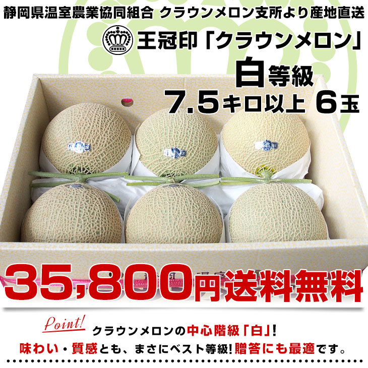 静岡県より産地直送 静岡県温室農業協同組合クラウンメロン支所 クラウンメロン 白 7.5キロ (6玉) 送料無料 めろん