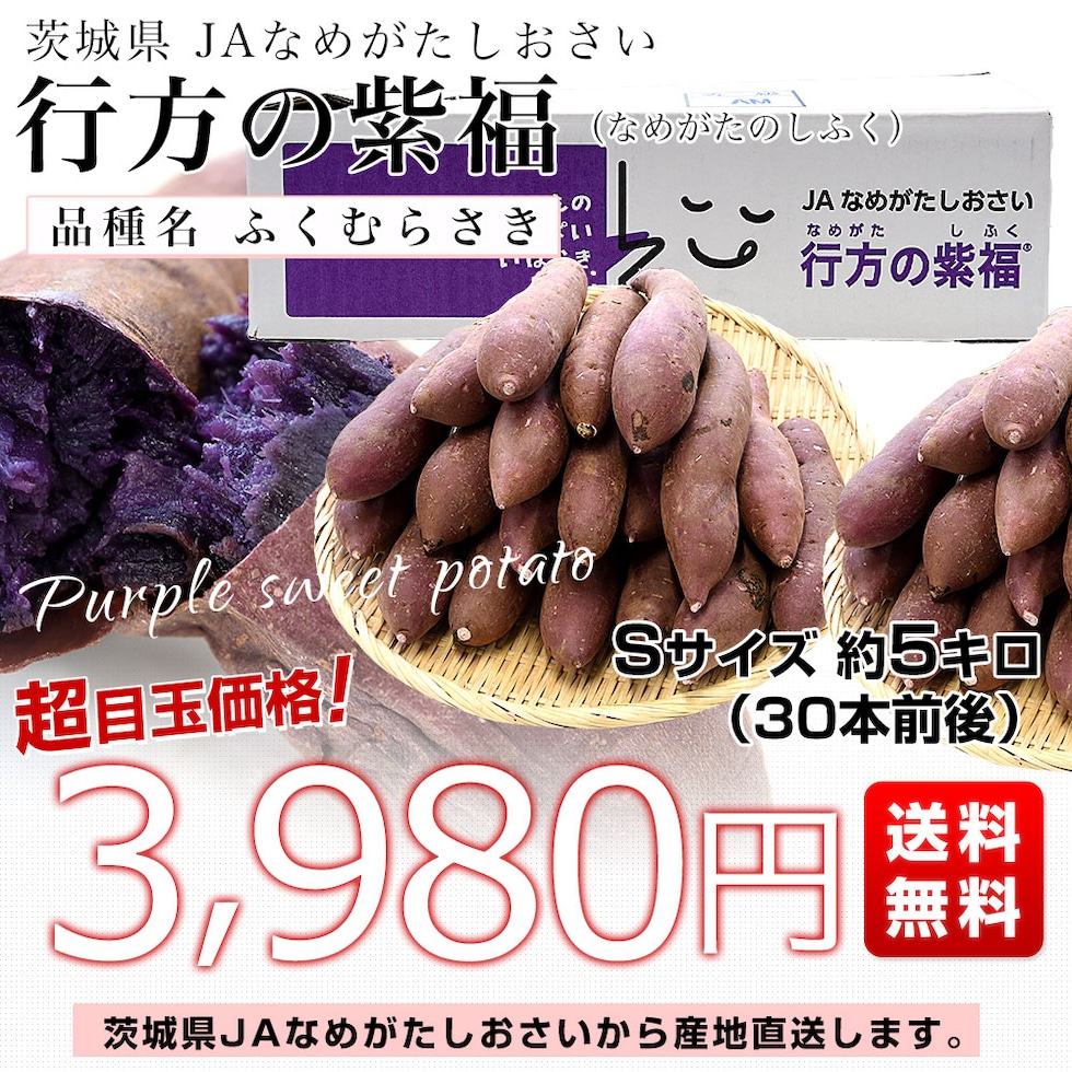 茨城県より産地直送 JAなめがたしおさい 行方の紫福(なめがたのしふく)品種名:ふくむらさき Sサイズ 約5キロ(30本前後) 送料無料 さつま芋 さつまいも サツマイモ 薩摩芋 紫芋 むらさき芋