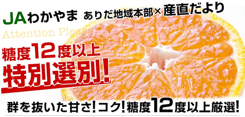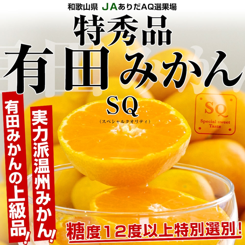 糖度12度以上の特秀品を厳選!日本のみかんどころ、和歌山県・JAありだの上級みかん「SQ(スペシャルクオリティ)」!光センサーで厳しく選別した、SQの名にふさわしい超美味みかんを産地直送でお届けいたします。