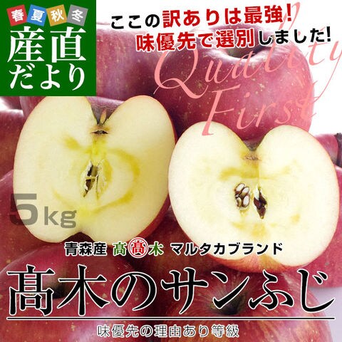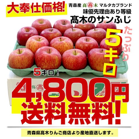 青森県より産地直送 高木商店 マルタカブランド 高木のサンふじ 味優先の理由あり 5キロ (16玉から20玉入) 送料無料 林檎 リンゴ 津軽 弘前