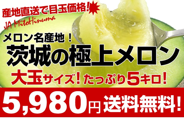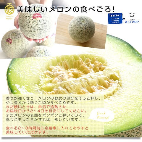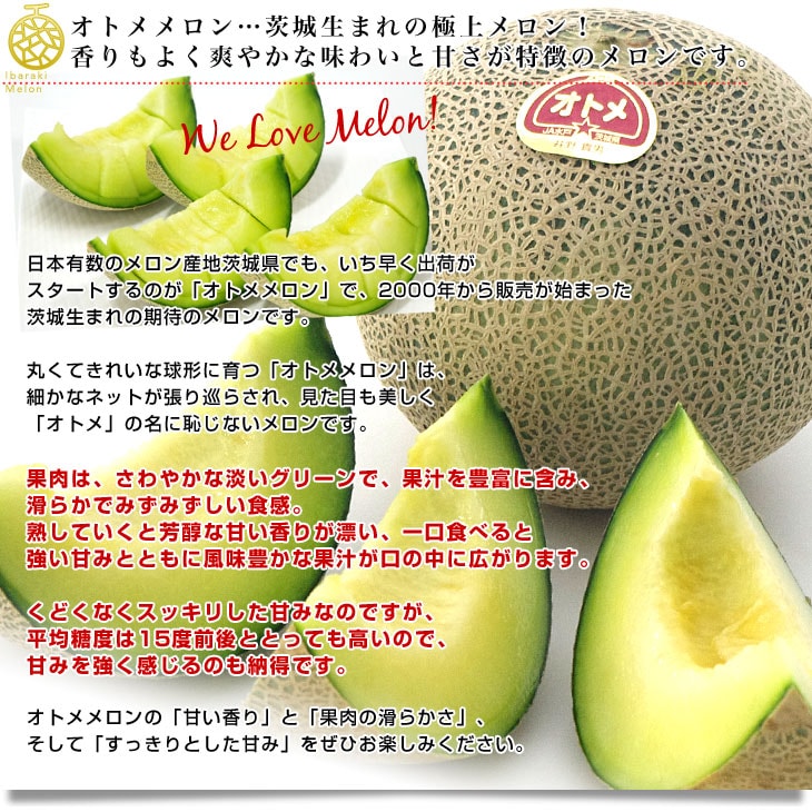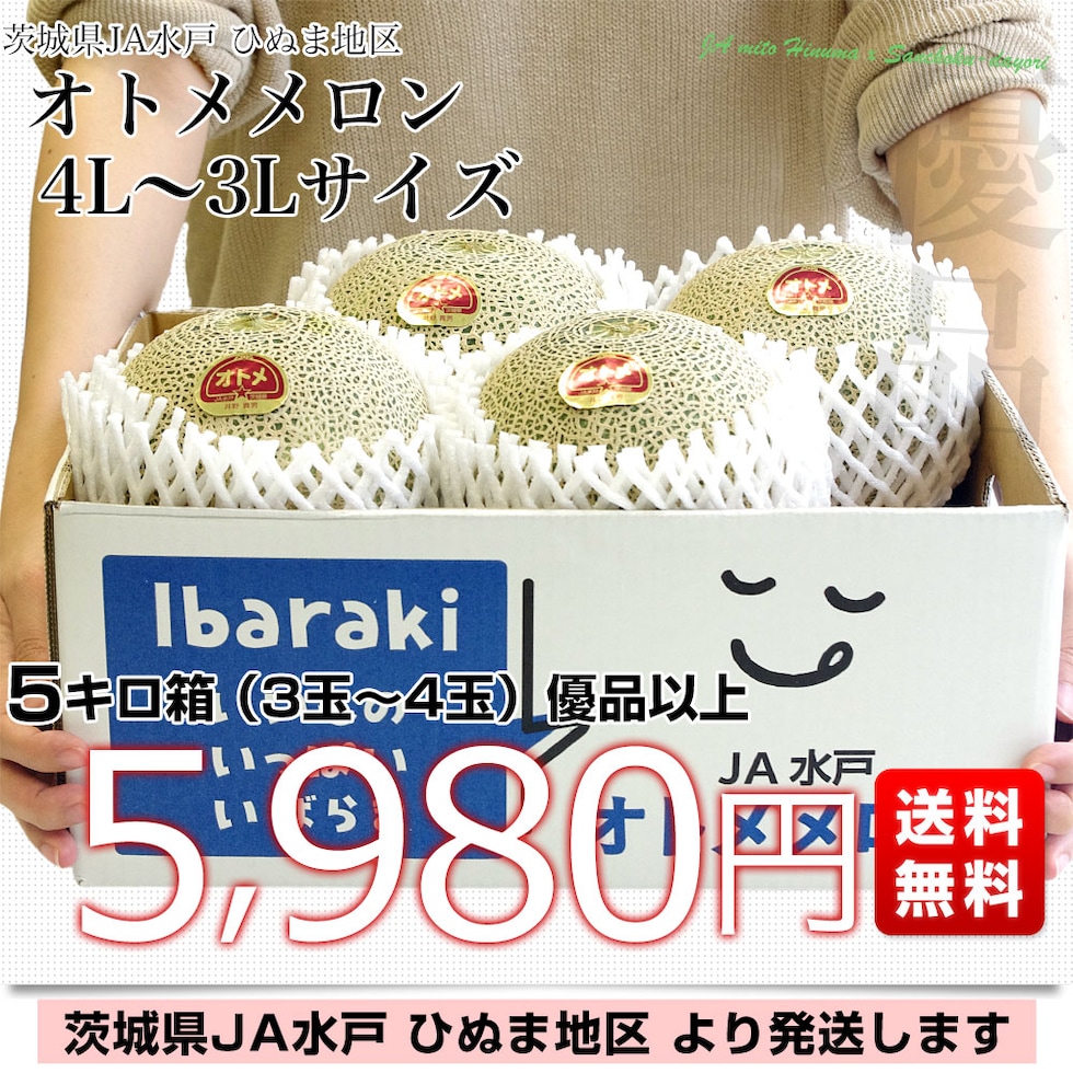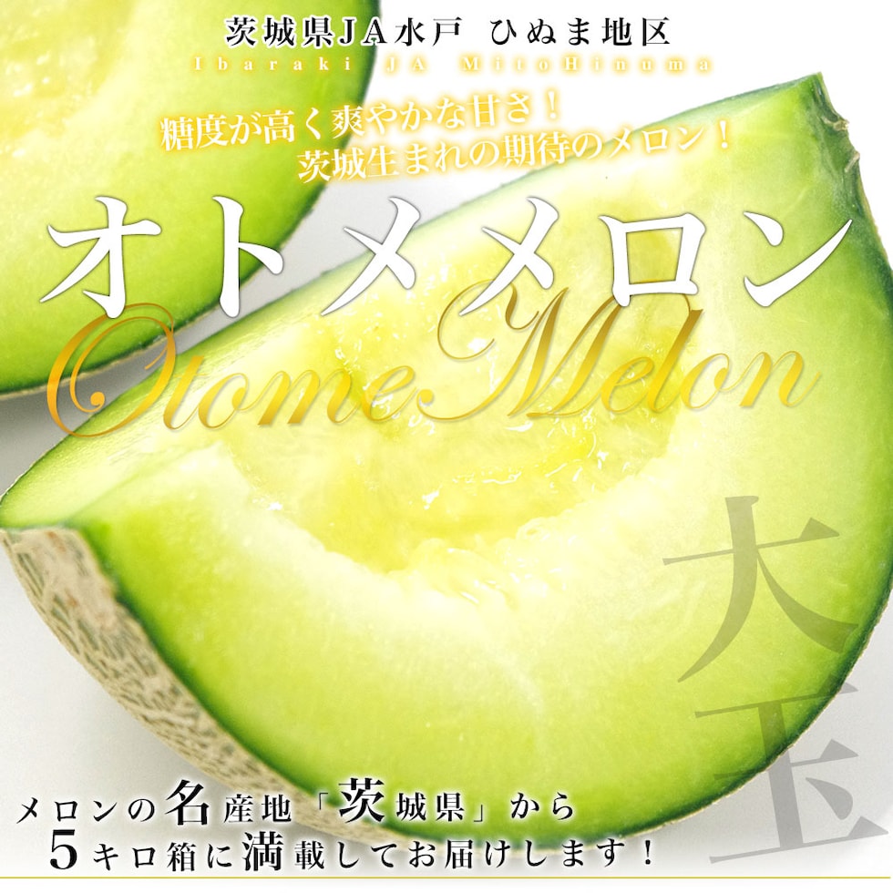 茨城県より産地直送 JA水戸 ひぬま地区 オトメメロン 大玉の4Lから3L 5キロ箱 (3玉から4玉) 送料無料 青肉メロン めろん