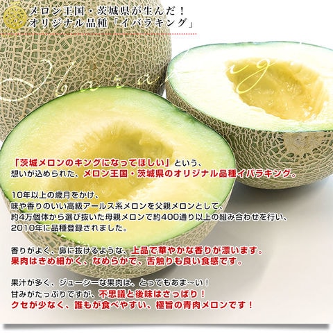 「茨城メロンのキングになってほしい」という、想いが込められた、メロン王国・茨城県のオリジナル品種イバラキング。その中でも、最上級等級のメロンをお届けします。甘さ、香り、食感すべてが最上級の美味しさのメロンです。ぜひご賞味ください。