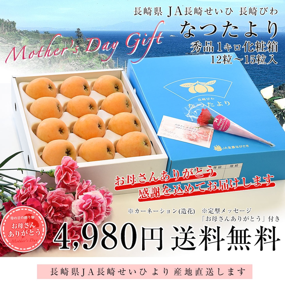 【母の日ギフト】長崎県より産地直送 JA長崎せいひ 長崎びわ なつたより 秀品 1キロ化粧箱 (12玉から15玉) 送料無料 枇杷 母の日びわ