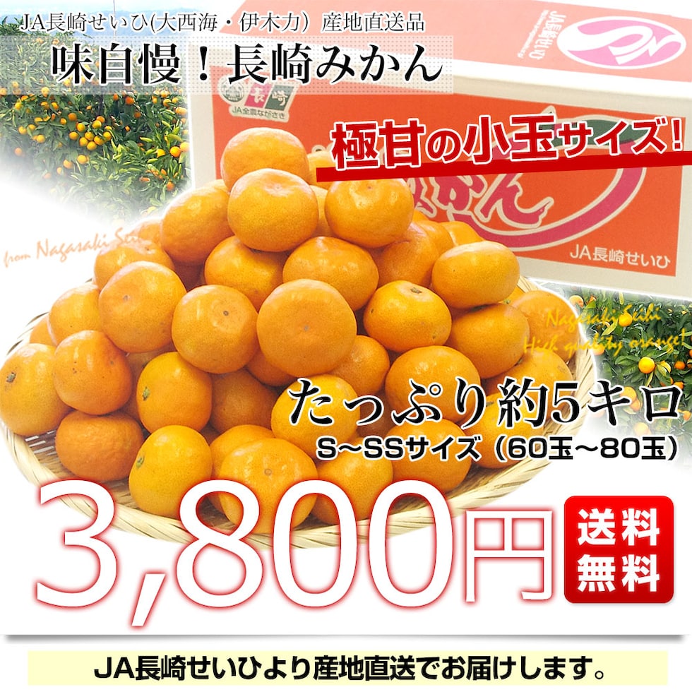 長崎県より産地直送 JA長崎せいひ 長崎みかん 小玉 SからSSサイズ 5キロ 蜜柑 ミカン 送料無料