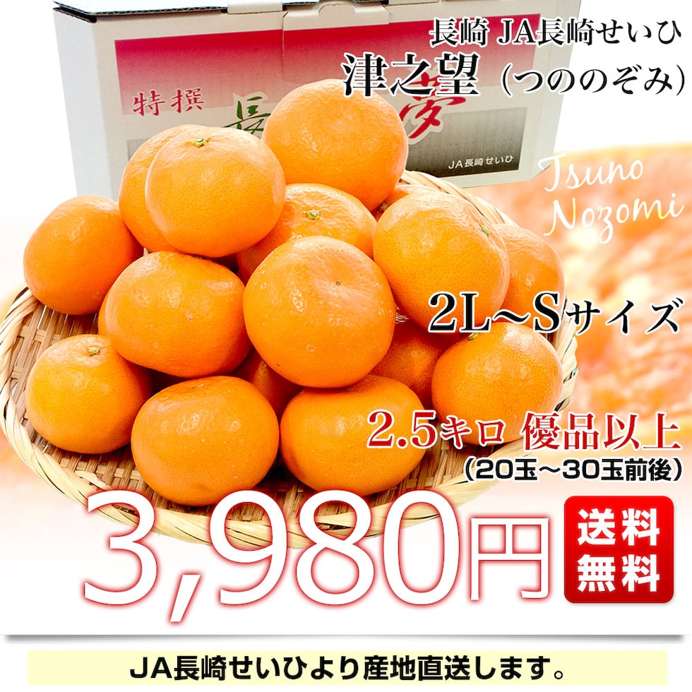 長崎県より産地直送 JA長崎せいひ 津之望(つののぞみ) 2LからSサイズ 優品以上 2.5キロ (20玉から30玉) 送料無料 柑橘 オレンジ 津の望