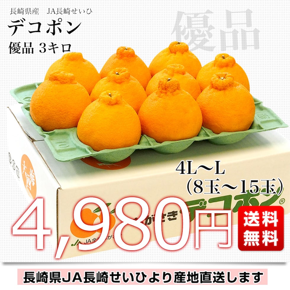 長崎県より産地直送 JA長崎せいひ 露地デコポン 優品 4LからLサイズ 3キロ (8玉から15玉) 送料無料 柑橘 かんきつ