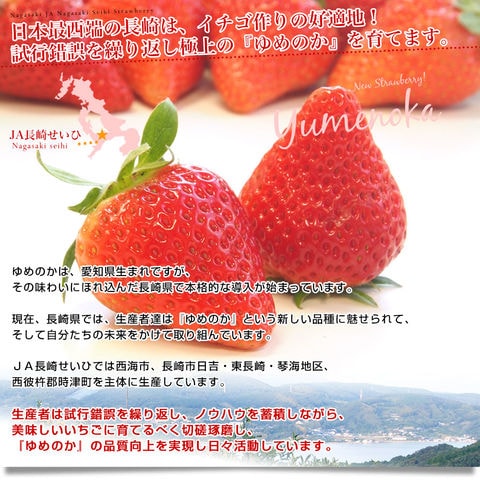 長崎県より産地直送 JA長崎せいひ ゆめのか 約500g × 2箱セット (250g×2P)×2箱) (合計18から30粒入り×2箱) 送料無料イチゴ 苺