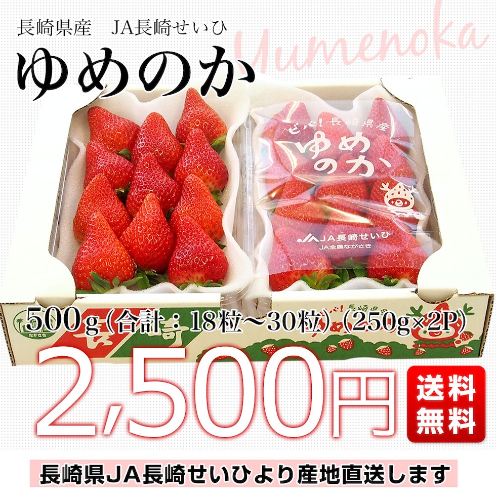 長崎県より産地直送 JA長崎せいひ ゆめのか 1箱 約500g (250g×2パック 入り) 合計18粒から30粒入り 送料無料 苺 イチゴ from九州