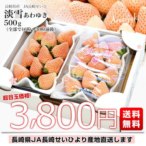 長崎県より産地直送 JA長崎せいひ「淡雪(あわゆき)」1箱約500g(合計16粒から30粒前後)送料無料 苺 イチゴ 白いちご 長崎西彼農協 from九州