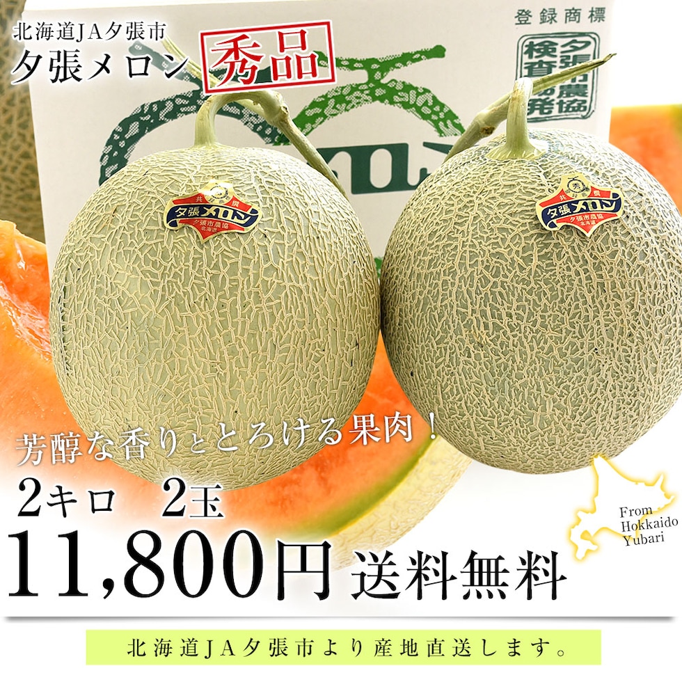 北海道より産地直送 JA夕張市 夕張メロン 秀品 2玉(2キロ×2玉) 送料無料ゆうばり 夕張キング めろん 御中元 お中元 夏ギフト ギフト