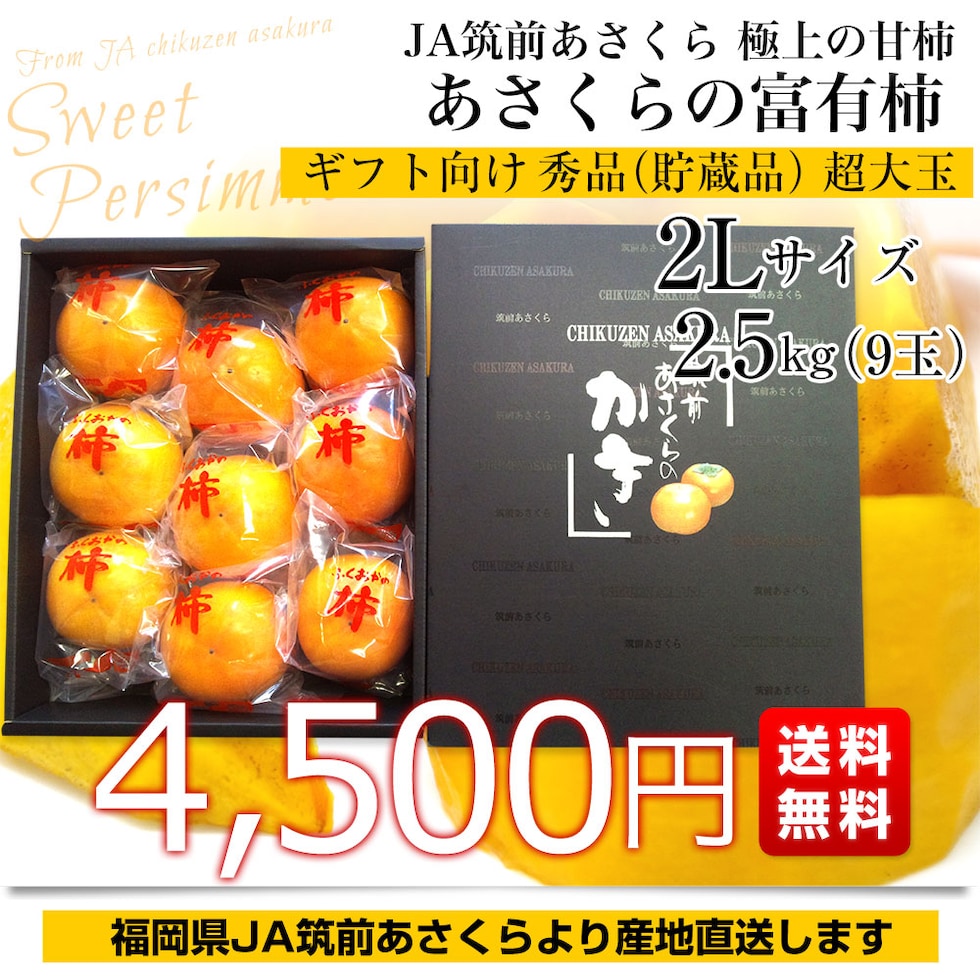 【2026年発送】福岡県から産地直送 JA筑前あさくら 朝倉の富有柿 <貯蔵品> 秀品 2Lサイズ 2.5キロ (9玉入り) 送料無料 かき 甘柿 あま柿