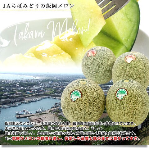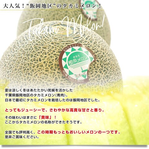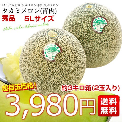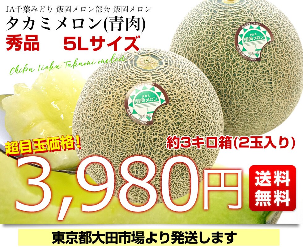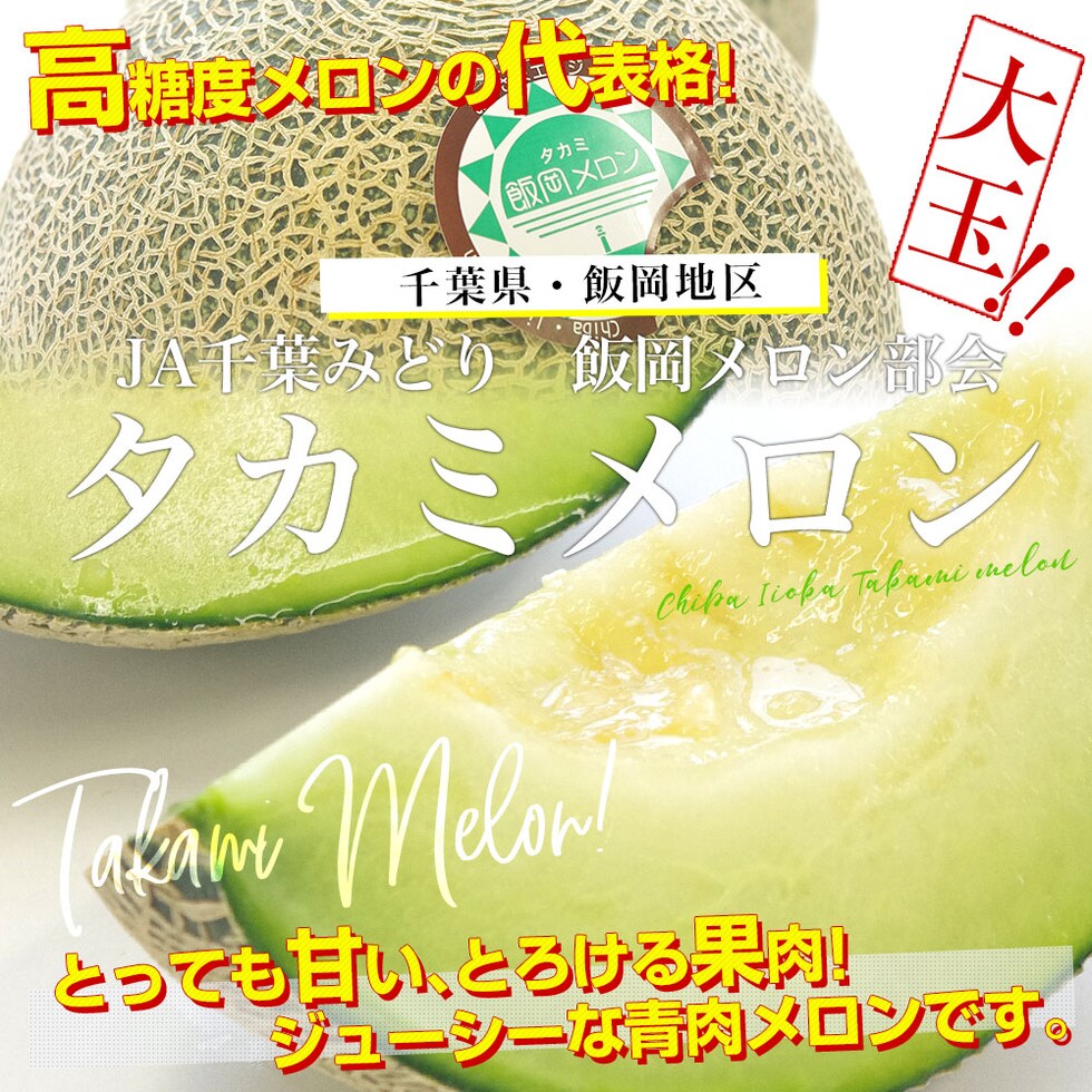 千葉県産 JAちばみどり飯岡メロン部会 タカミメロン(青肉) 秀品 5Lサイズ 約3キロ箱 (2玉入り) 送料無料 貴味メロン 飯岡メロン メロン 市場発送