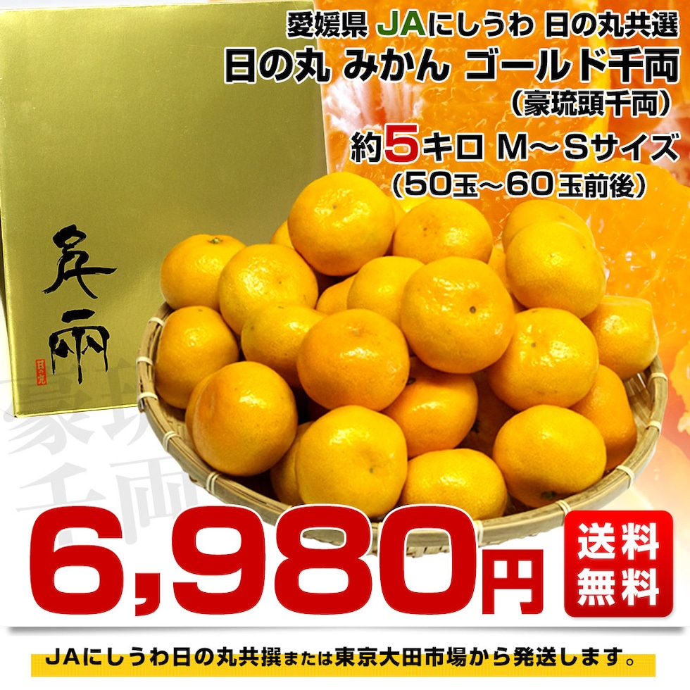 【お歳暮・冬ギフト】愛媛県より産地直送 JAにしうわ 日の丸プレミアムみかん ゴールド千両(豪琉頭千両)MからSサイズ5キロ(50玉から60玉前後)送料無料 蜜柑ミカン ギフト