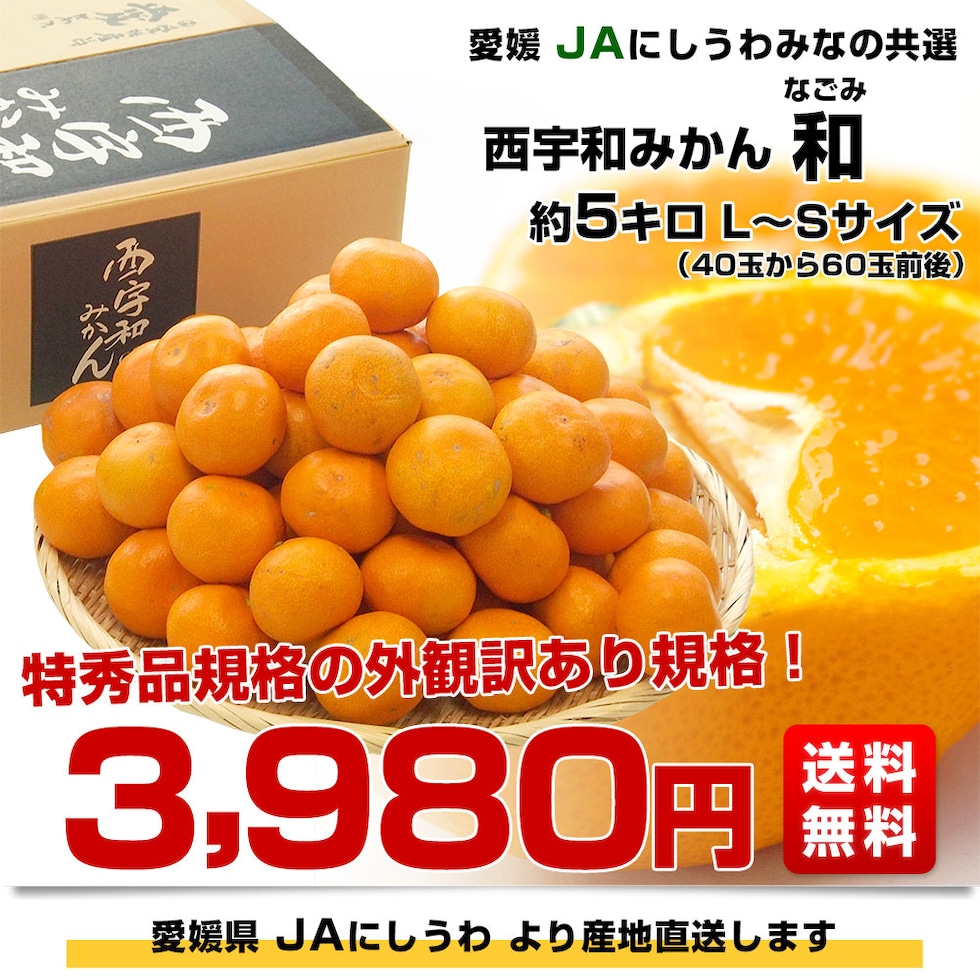 愛媛県より産地直送 JAにしうわ みなの共選 西宇和みかん 和 (なごみ) LからSサイズ約5キロ(40玉から60玉前後) 送料無料 蜜柑 ミカン