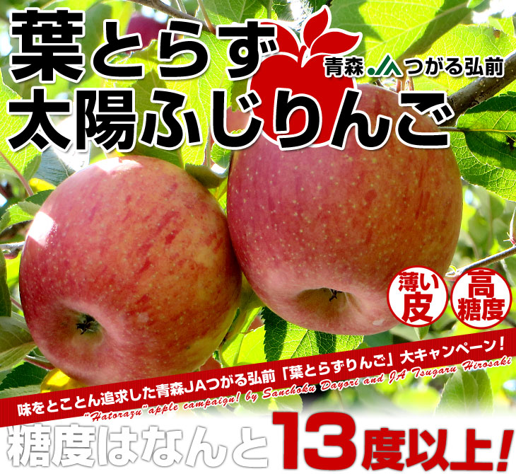 青森県から産地直送 JAつがる弘前 葉とらず太陽ふじりんご 3キロ(8玉から13玉) 糖度13度以上 林檎 リンゴ 送料無料