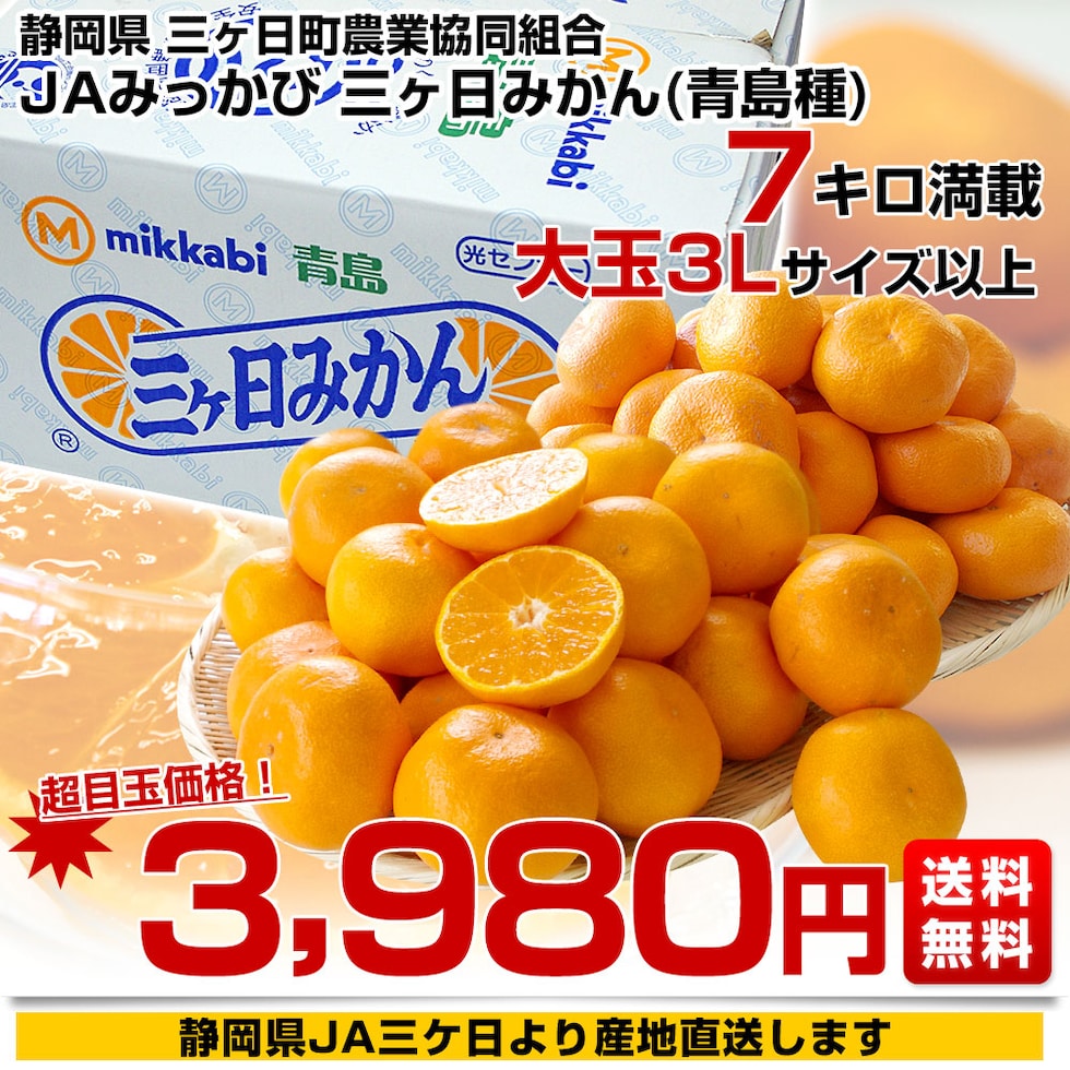 【2026年発送】静岡県より産地直送 JAみっかび 三ケ日みかん (青島種) 3Lサイズ 7キロ (30玉から40玉)送料無料 三ヶ日 みつかび ミカン 温州みかん