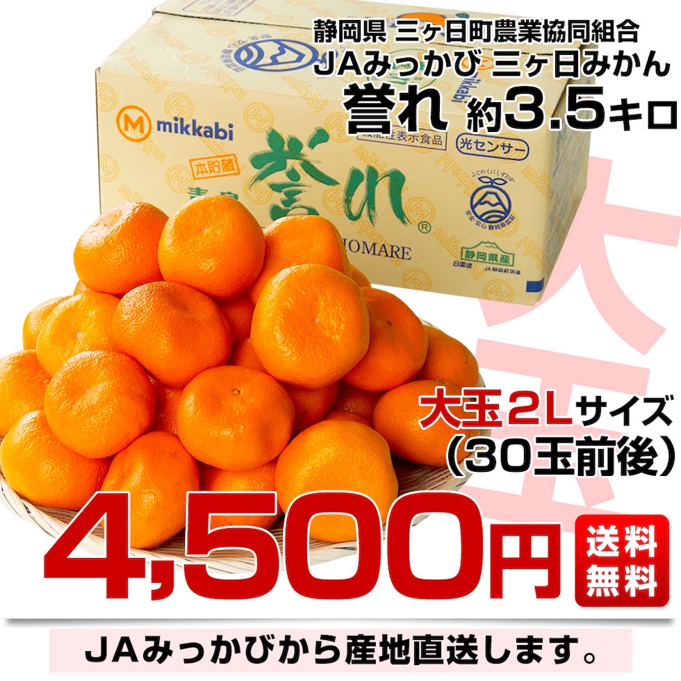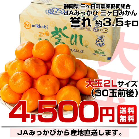 静岡県より産地直送 JAみっかび 三ケ日みかん 誉れ 2Lサイズ 約3.5キロ ミカン 蜜柑 みかん 送料無料