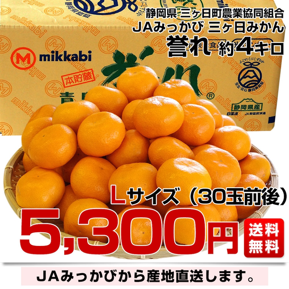 静岡県より産地直送 JAみっかび 三ケ日みかん 誉れ Lサイズ 約4キロ ミカン 蜜柑 みかん 送料無料