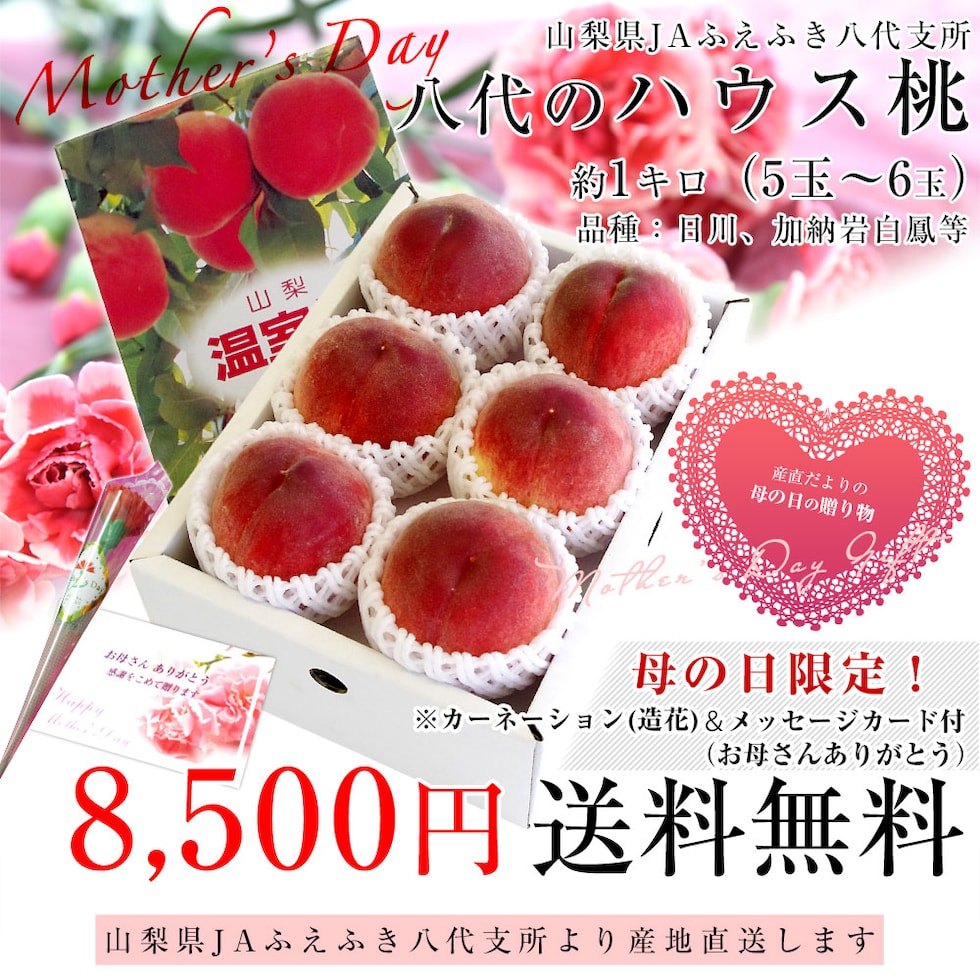 【母の日ギフト】 山梨県より産地直送 JAふえふき八代支所 八代のハウス桃 約1キロ (5玉から6玉) 送料無料 日川白鳳 加納岩白鳳 もも 笛吹 母の日桃