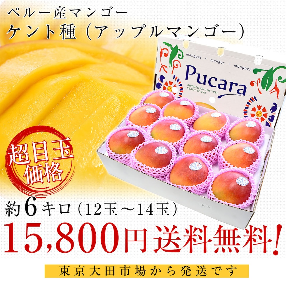 ペルー産アップルマンゴー ケント種 約6キロ 原体箱(12玉から14玉入) 送料無料 マンゴー トロピカルフルーツ