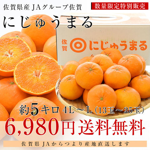 佐賀県より産地直送 JAグループ佐賀 にじゅうまる 4LからLサイズ 約5キロ(13玉から25玉前後) 送料無料 柑橘 二重丸 中晩柑 みかん