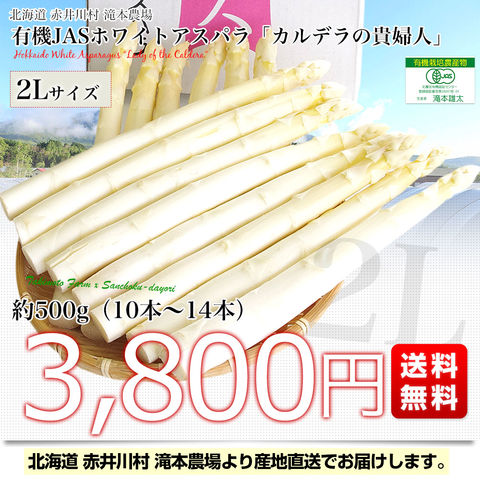 北海道より産地直送 赤井川村滝本農場の有機JASホワイトアスパラ「カルデラの貴婦人」 極太2Lサイズ 約500g入り 送料無料 アスパラガス ※クール便発送