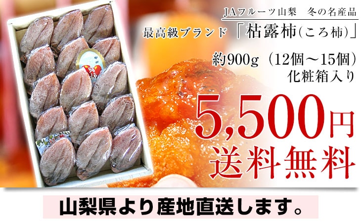 【お歳暮・冬ギフト】山梨県より産地直送 JAフルーツ山梨 松里支所 干し柿 枯露柿 (ころ柿) 約900g化粧箱(12個から15個入り) ころがき ほしがき 送料無料 コロ柿