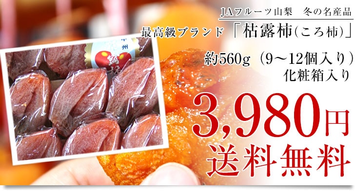 【お歳暮・冬ギフト】山梨県より産地直送 JAフルーツ山梨 松里支所 干し柿 枯露柿 (ころ柿) 約560g化粧箱(9個から12個入り) ころがき ほしがき 送料無料 コロ柿